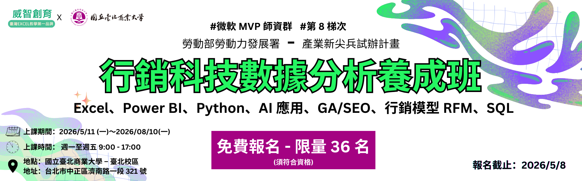 上課日期:2026/5/11 (一)~2026/8/10(一)(結訓日)